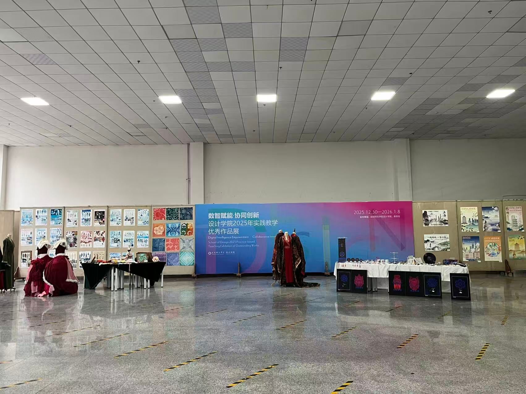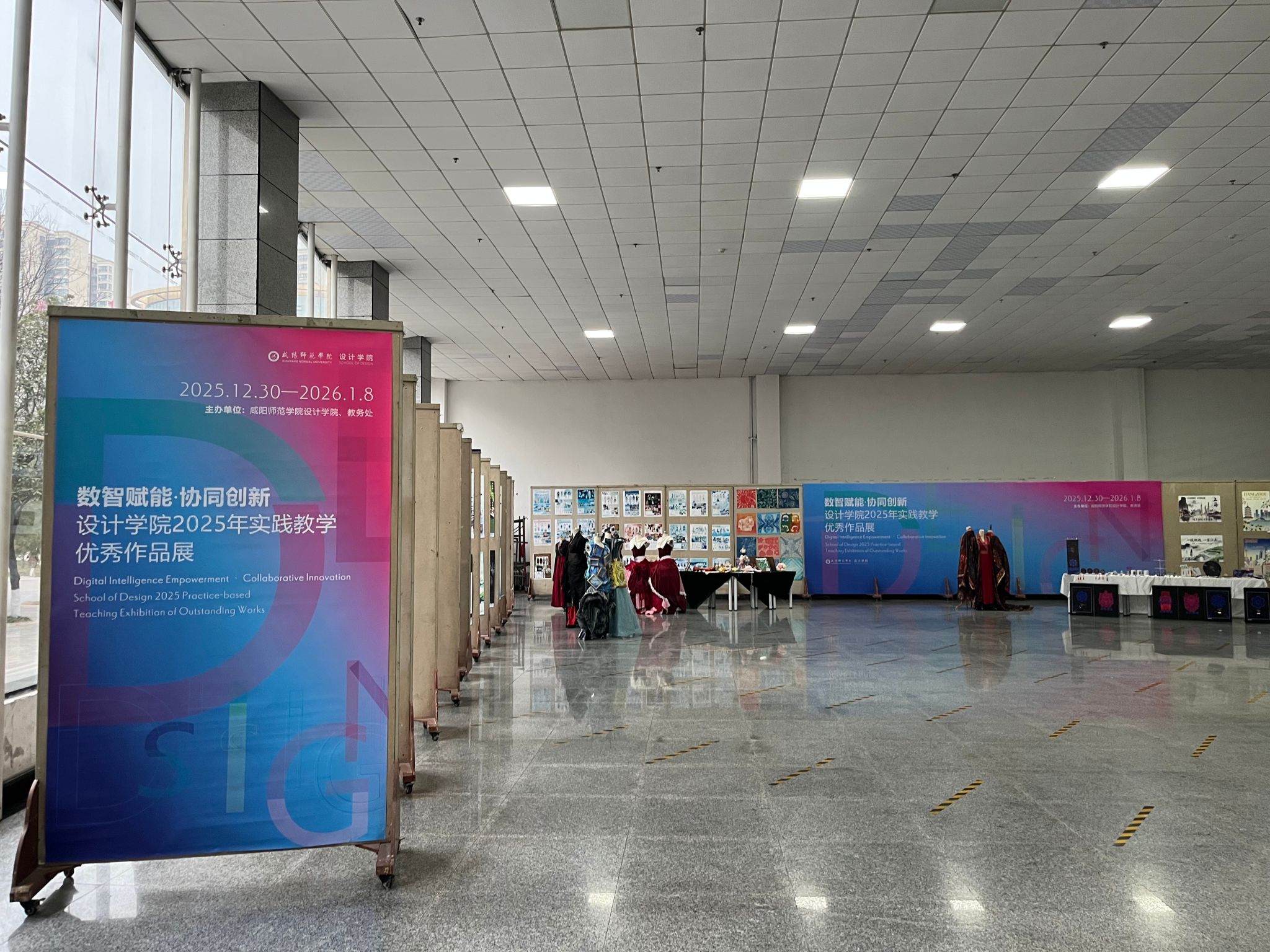 为深化应用型人才培养模式改革,全面推进教育数字化转型,由教务处与设计学院联合主办的“数智赋能·协同创新——2025年实践教学优秀作品展”12月30日至1月8日间,于博雅楼一楼展厅成功举办。本次展览集中展示了学院在考察实践、课程改革及数智化教学探索方面的阶段性成果,汇集了产品设计、视觉传达设计、服装与服饰设计、环境设计四个专业两百余件优秀作品。