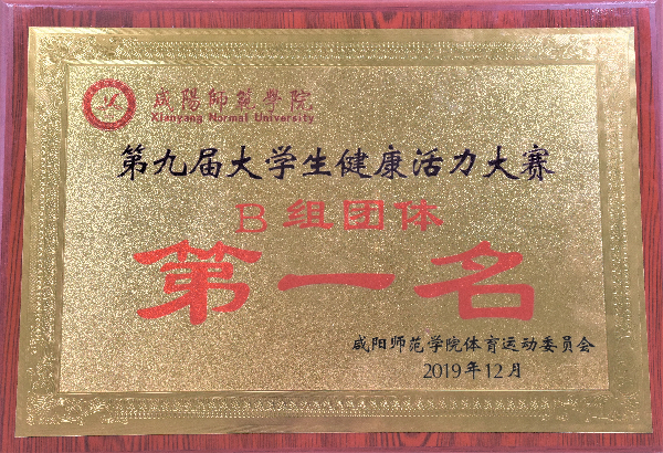 经过全体队员默契的配合、出色的表现,设计学院赢得2019年咸阳师范学院第九届健康活力大赛“团体第一名”、“最佳团队组织奖”、“最佳成套编排奖”、艺术体操第一名、街舞规定套路第一名、拉丁规定套路第一名、啦啦操第二名、街舞自选第三名的好成绩,取得了历史性的突破。